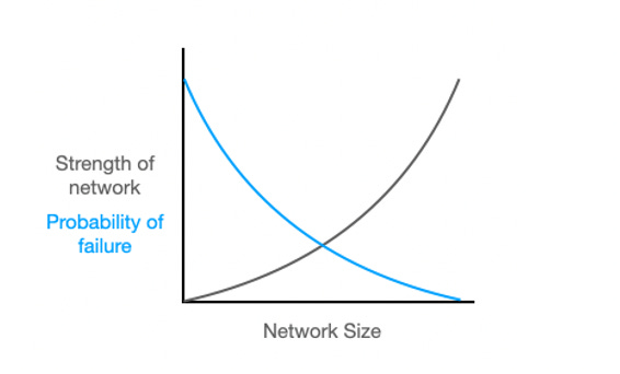 While most of the attention is on network strength, it’s often neglected what else is happening. After a network size reaches critical mass, the business is becoming exponentially less likely to fail.
